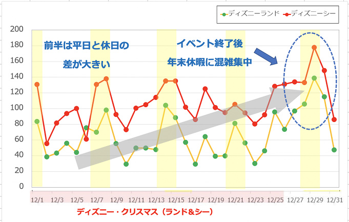 ディズニー混雑情報 過去の混雑ランキング 曜日 月 日別
